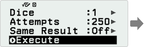Up to 250 rolls can be simulated for 1 to 3 dice.