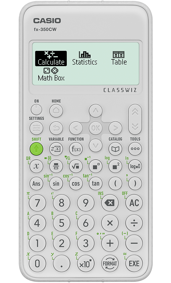 The new ClassWiz CW Series is designed for the teaching and studying of today. With its new design and key placement, it can be used by anyone. Includes MathBox, a fun math learning feature. Links up with ClassPad.net to support ICT classes. These features help to boost students' curiosity toward math learning.