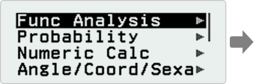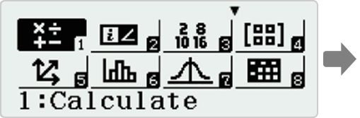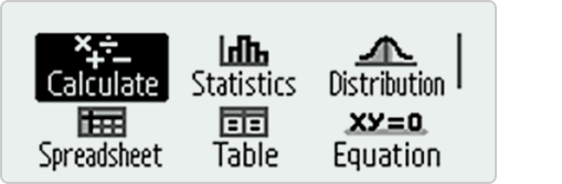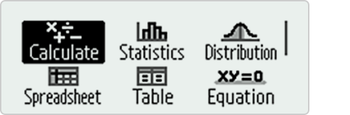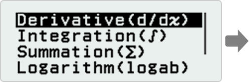 Catalog menu shows categories of the commands, functions and symbols in accordance with the calculator app you are currently using and the current status (displayed screen or current settings) of the app.
