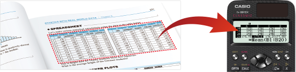 The spreadsheet function makes it easy to use real-world data even in the classroom, enabling students to effectively study statistical processing.