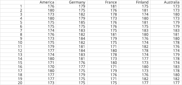 Example: Student's height data comparison chart