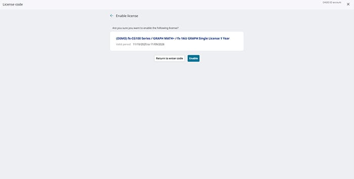 06 Confirm that the license information is accurate and click “Enable.”